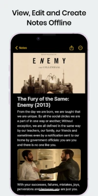 Отличаващо се със своя изчистен и интуитивен интерфейс, Notes ви позволява да улавяте мисли мигновено, без никакви разсейвания. Но функционалността на Notes далеч надхвърля бързото писане. Осигурявайки 100% офлайн достъп, вашите бележки са винаги на една ръка разстояние, независимо дали имате интернет връзка или не. Защитата на личната ви информация е наш основен приоритет: всички ваши записки се съхраняват локално на вашето устройство, без скрити тракери или синхронизация с трети страни. Допълнително можете да ги защитите с персонална парола, превръщайки Notes в идеалното убежище за вашите лични дневници и поверителни меморандуми.