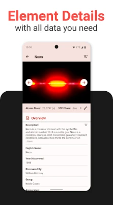 Потопете се в дълбочината на всеки елемент с изчерпателни детайли и персонализирайте вашето учебно преживяване. Вграденият речник ще обогати терминологията ви, а лентата за любими ви позволява да приоритизирате най-важната за вас информация. Правете и съхранявайте бележки за всеки елемент, за да подпомогнете своите проучвания. И за да осигурим непрекъснат достъп до знание, приложението предлага офлайн режим, спестяващ данни чрез деактивиране на зареждането на изображения. С данни, обхващащи атомен номер, тегло, плътност, точки на топене и кипене, електронна конфигурация, период на полуразпад, твърдост по Моос, свойства на кристална структура и много други, вие сте подготвени за всяко предизвикателство.