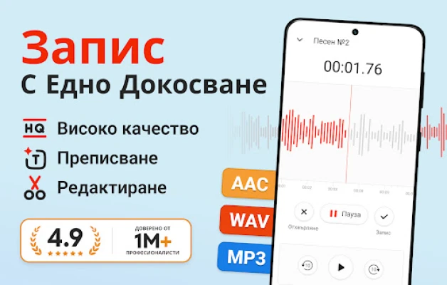 Търсите ли интуитивен и мощен инструмент за улавяне на всеки звук около Вас? Sound Recorder Plus е Вашият надежден асистент, създаден да трансформира начина, по който записвате. Предлагайки впечатляващо аудио качество с опции за моно и стерео звук, приложението поддържа популярните AAC и WAV формати, гарантирайки чистота и детайлност. С възможността за запис във фонов режим, дори когато екранът е изключен, и опцията за директно презаписване на аудио от избрана точка, Вие имате пълен контрол. Не се притеснявайте за загуба на данни – автоматичното запазване предпазва записите Ви при прекъсване, а неограниченото време за запис означава, че единственото ограничение е Вашето желание и паметта на устройството.